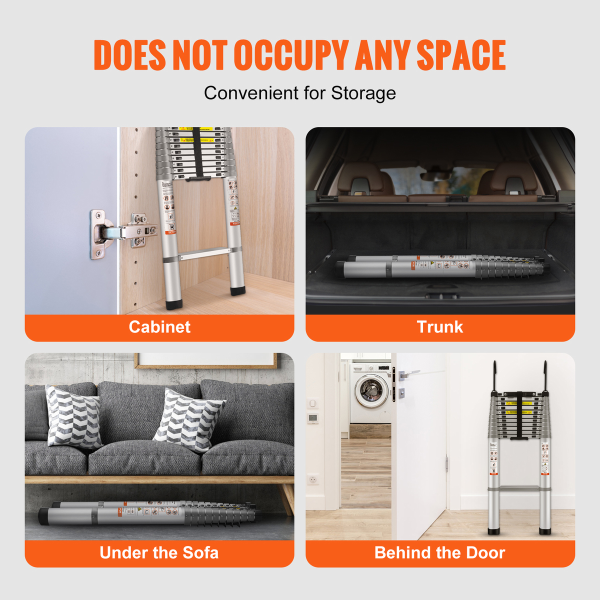 Convenient Storage: The foldable telescopic ladder is lightweight and compact, making it easy for female users to carry. You can place it almost anywhere, including under the sofa, behind doors, or in the car trunk. It is more portable and space-saving than traditional ladders.