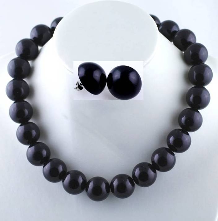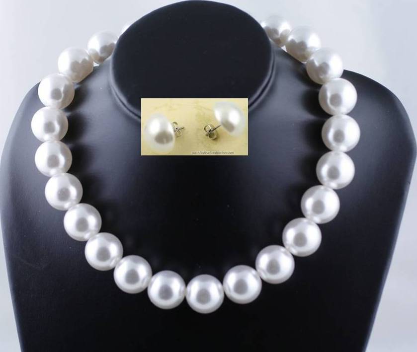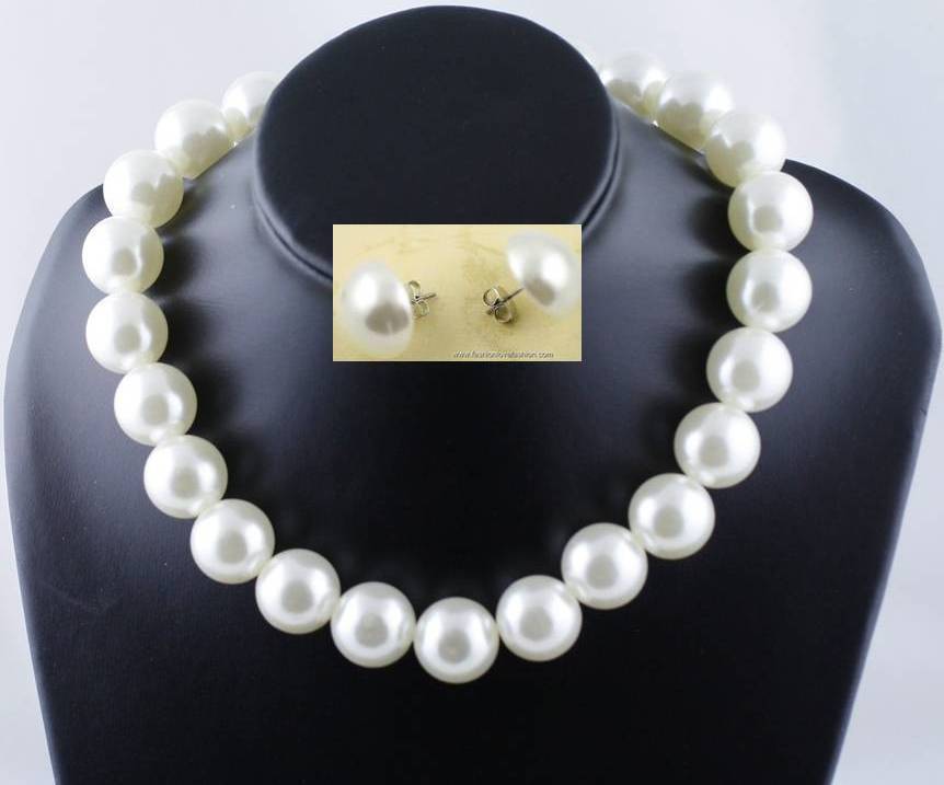 20mm Faux Pearl Necklace Choker + 20mm Pearl Button Earrings 18" White Black