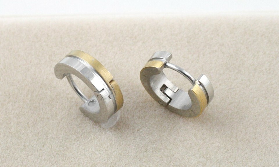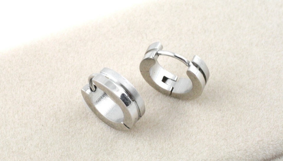 1 PAIR Men Women Pierced Stainless Steel Hoop Earrings