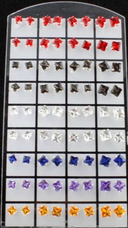 WHOLESALE A LOT 36 PAIRS SHINY ROUND and Square CZ Pierced STUDS SIZES 5 6 7 8 MM