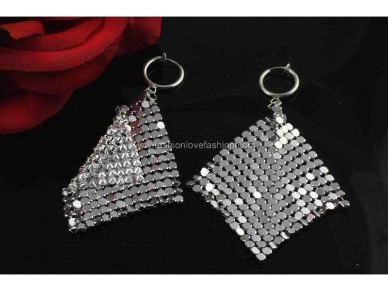 METAL: Silver or Gold Plated Steel, Soft Metal Chip Cloth-Shape Bling Dangle Earrings