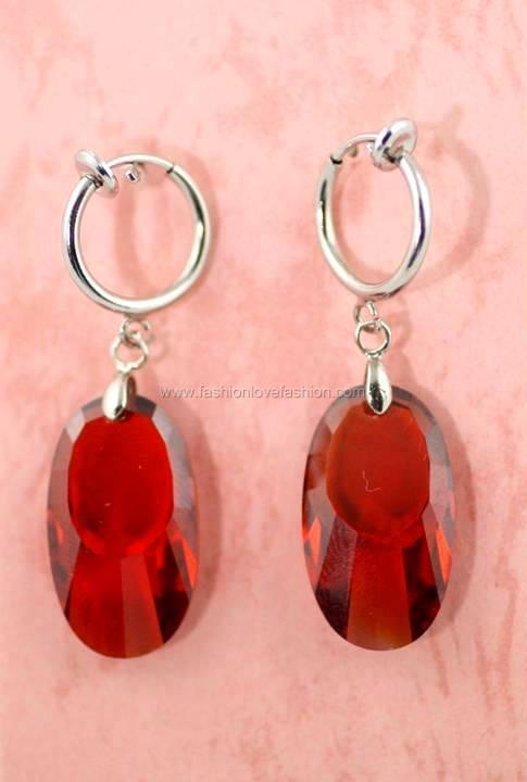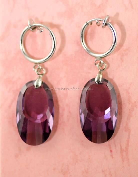 1 PAIR CLIP-ON CZ,CUBIC ZIRCONIA DANGLE EARRINGS 7 COLORS