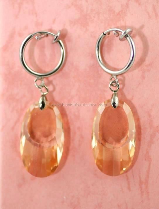 1 Pair Spring CLIP-ON CZ,CUBIC ZIRCONIA DANGLE EARRINGS 7 COLORS