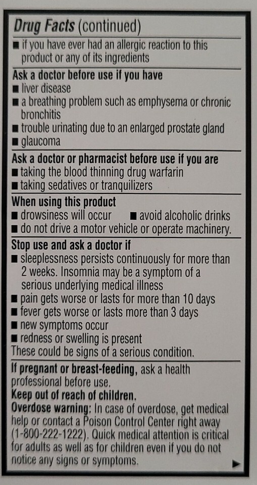Purpose: Pain reliever/fever reducer, Sleep aid.