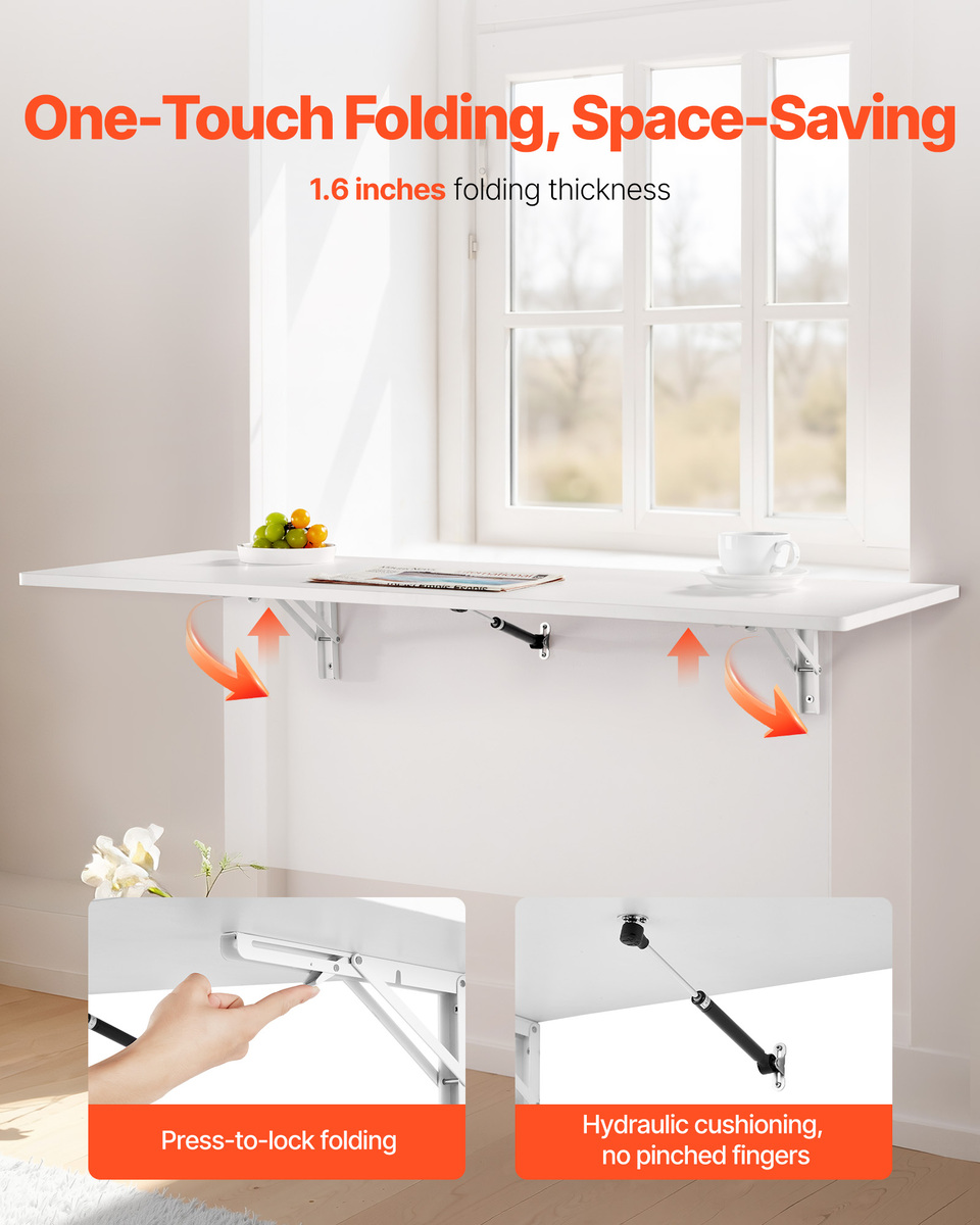 VEVOR Wall Mounted Folding Table, 43.3 x 18 inches Table, Fold Down Desk, White