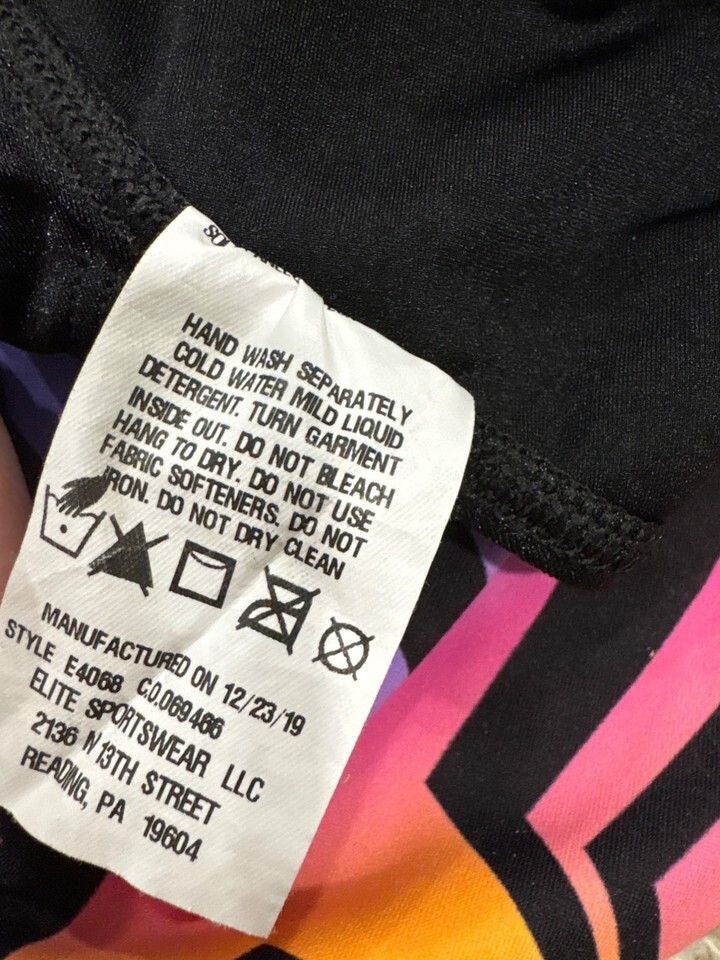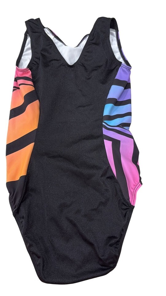 Girls GK Elite Cirque Gymnastics Leotard Rainbow Star Print Black Side Panels