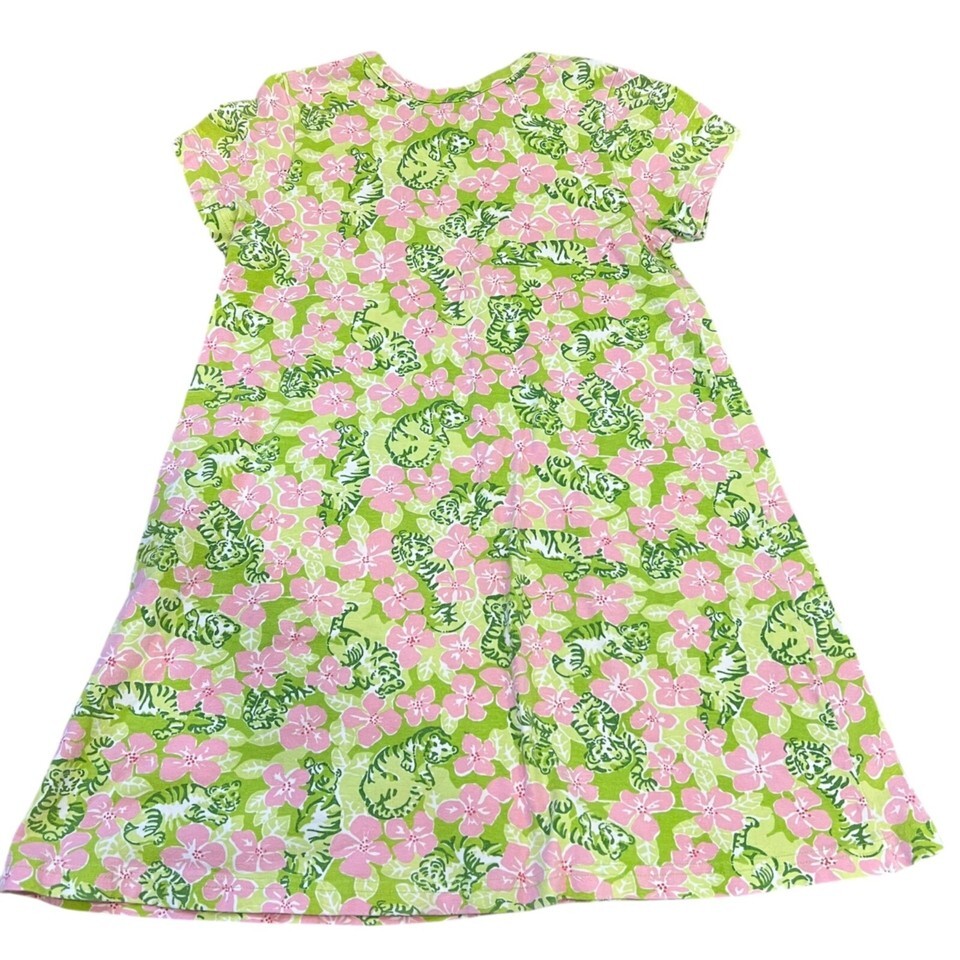 Lilly Pulitzer White Label Girls Floral A-Line Dress Size 7 Pink & Green Tiger