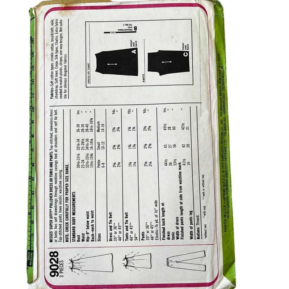 Simplicity 9028 Sewing Pattern Pullover Dress Tunic Pants Small 10-12