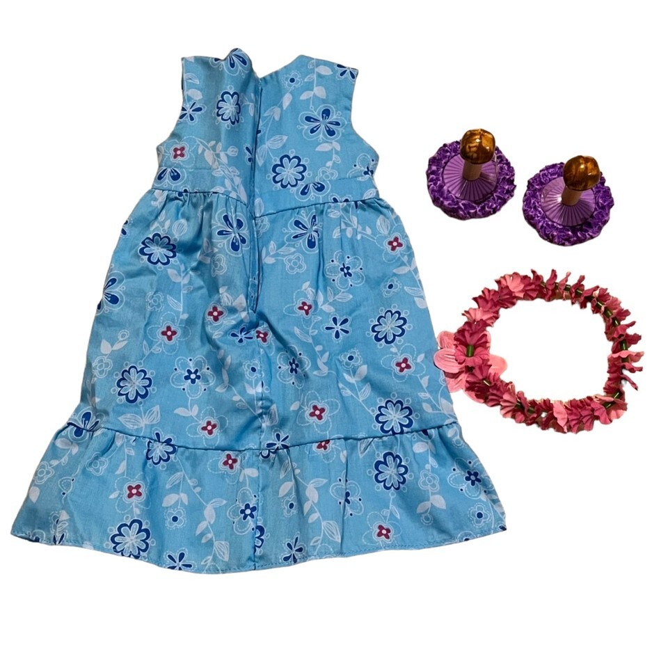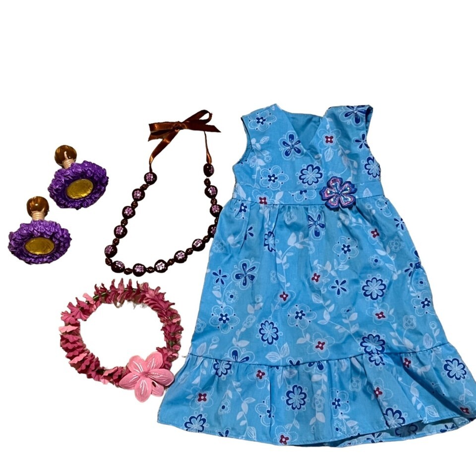 This American Girl set includes a vibrant blue floral dress and coordinating accessories, making it an excellent addition to any doll collection.