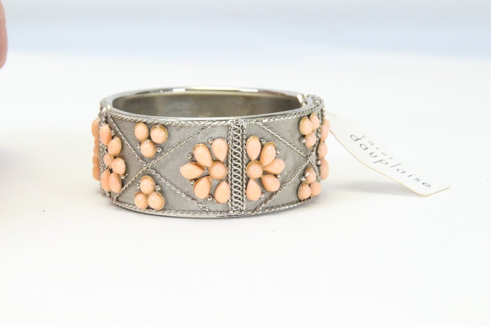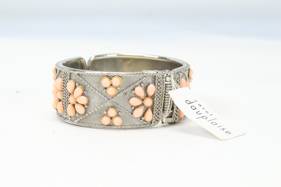 Carol Dauplaise Hinged Bracelet Pink Teardrop Beads New With Tag 2.25" ID 1" W