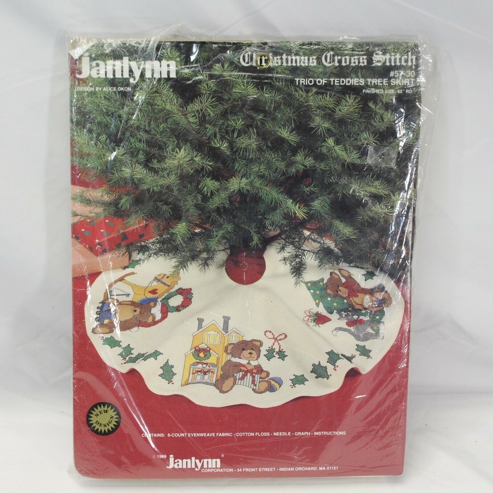Janlynn Christmas Cross Stitch Trio of Teddies Tree Skirt #57-30 Open Package 1989