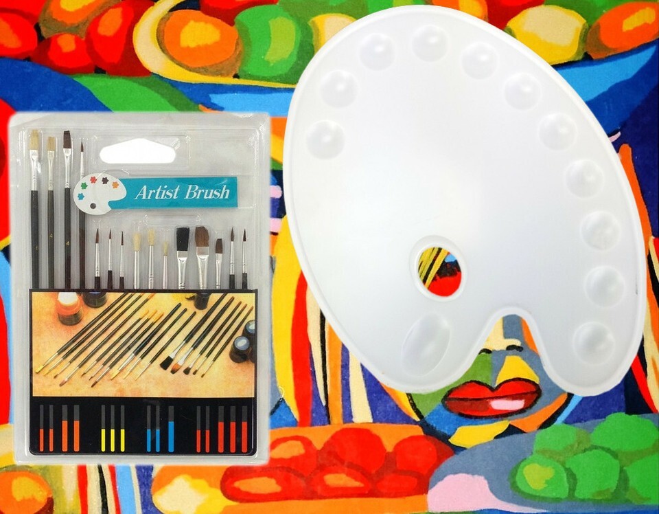Painting Starter Kit 18 Color Acrylic Paints, 15 Brushes with Painters Palette