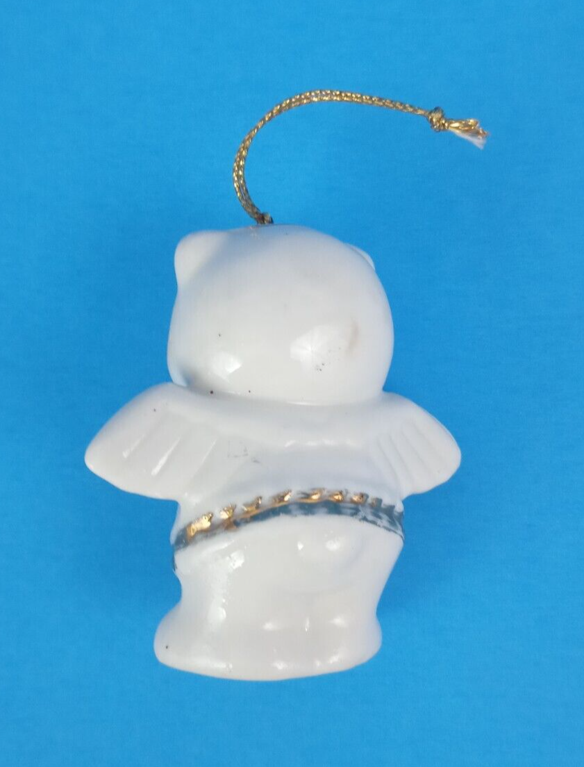 3 Porcelain Angel Teddy Bear White Gold Christmas Ornaments