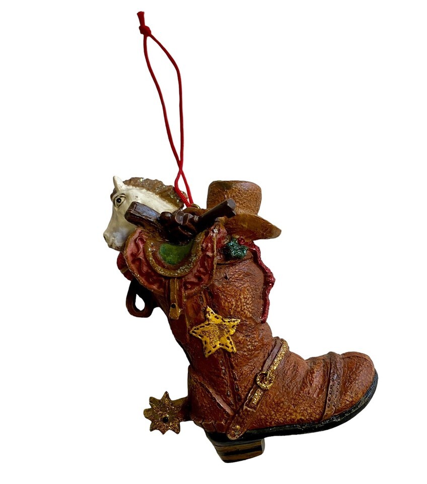 Cowboy Boot Christmas Ornament Spur Star Hat Horse Head Saddle Glitter 3 3/4”