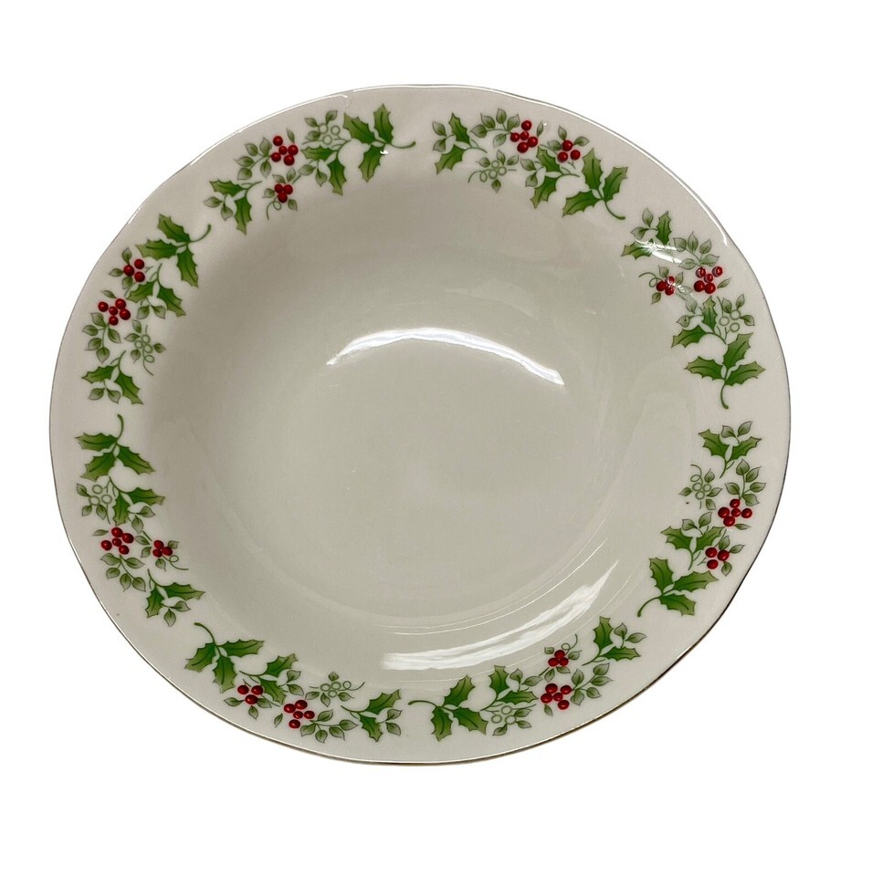 Holly Berry Serving Bowl Christmas Gibson Housewares Holiday Table 9"