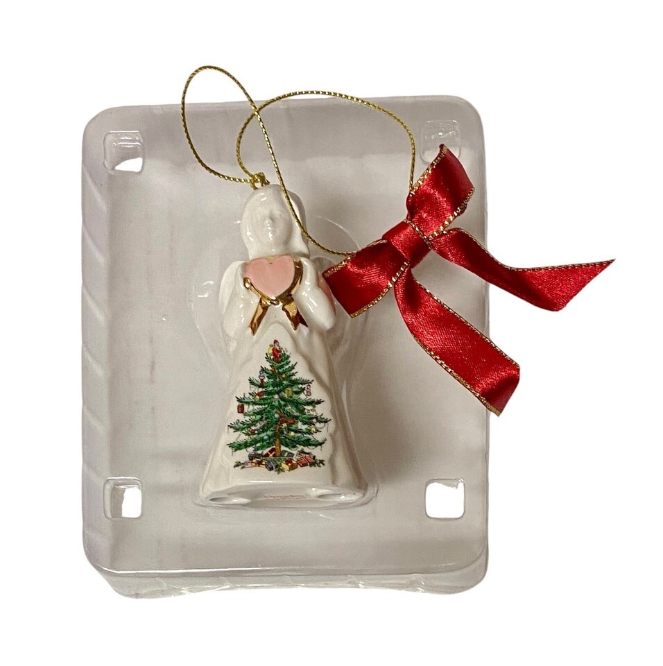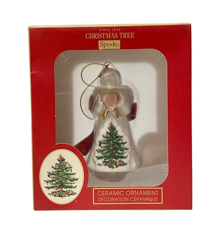 Spode Ceramic Angel Christmas Tree Ornament Portmeirion Pink Heart Boxed 3”