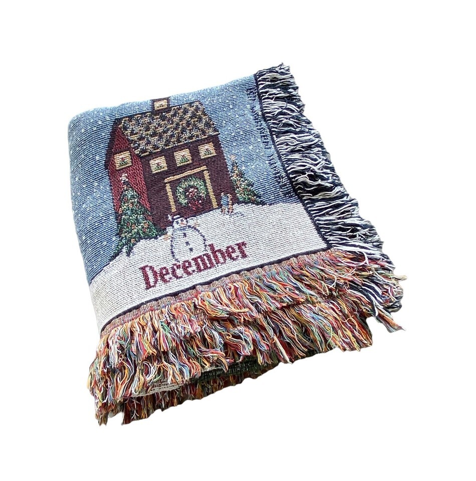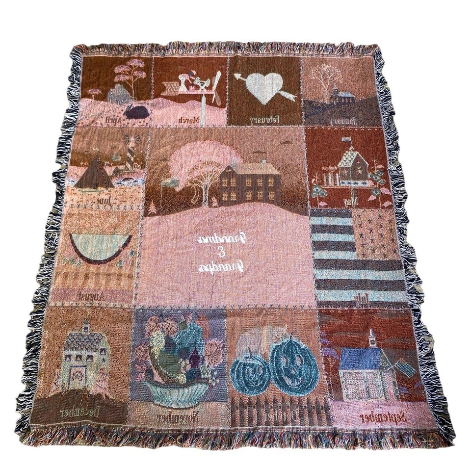 Calendar Tapestry Throw Blanket Grandma and Grandpa 12 Months Seasons Fringe
