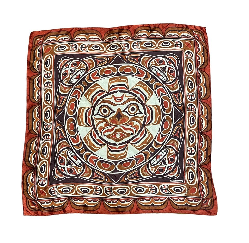 Vintage Eleanor Paine Skemo Scarf Totem Figures Native Inuit Made In Japan 26”