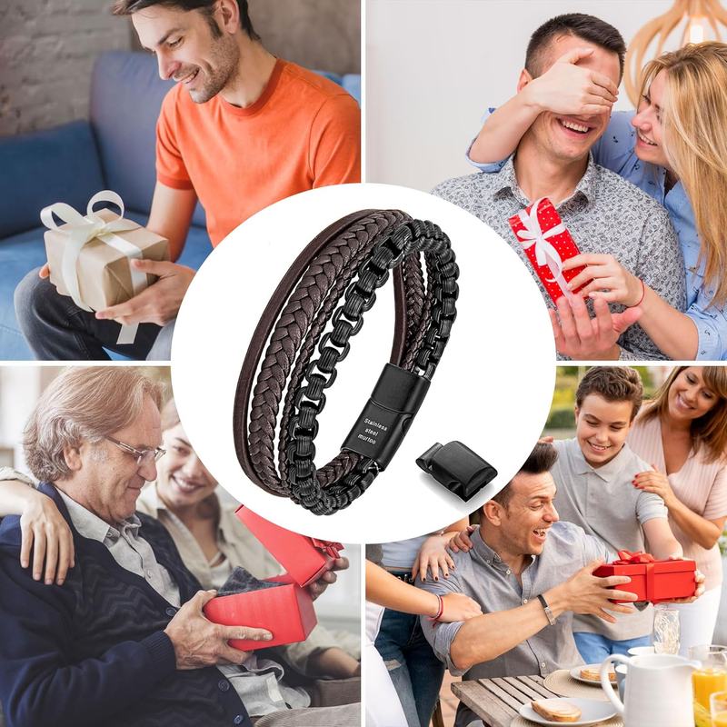 Men's Leather and Stainless Steel Bracelet - and 49 similar items