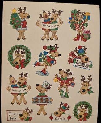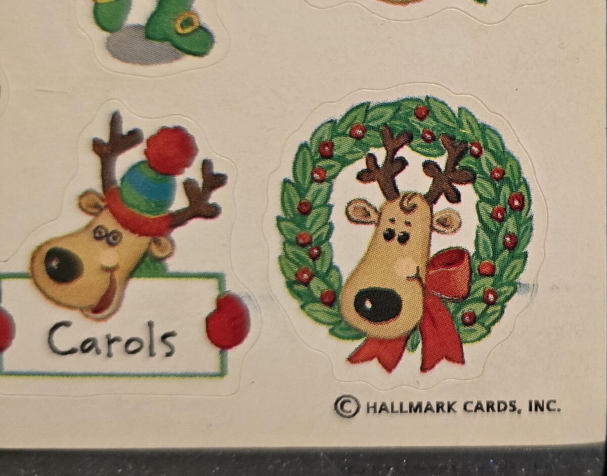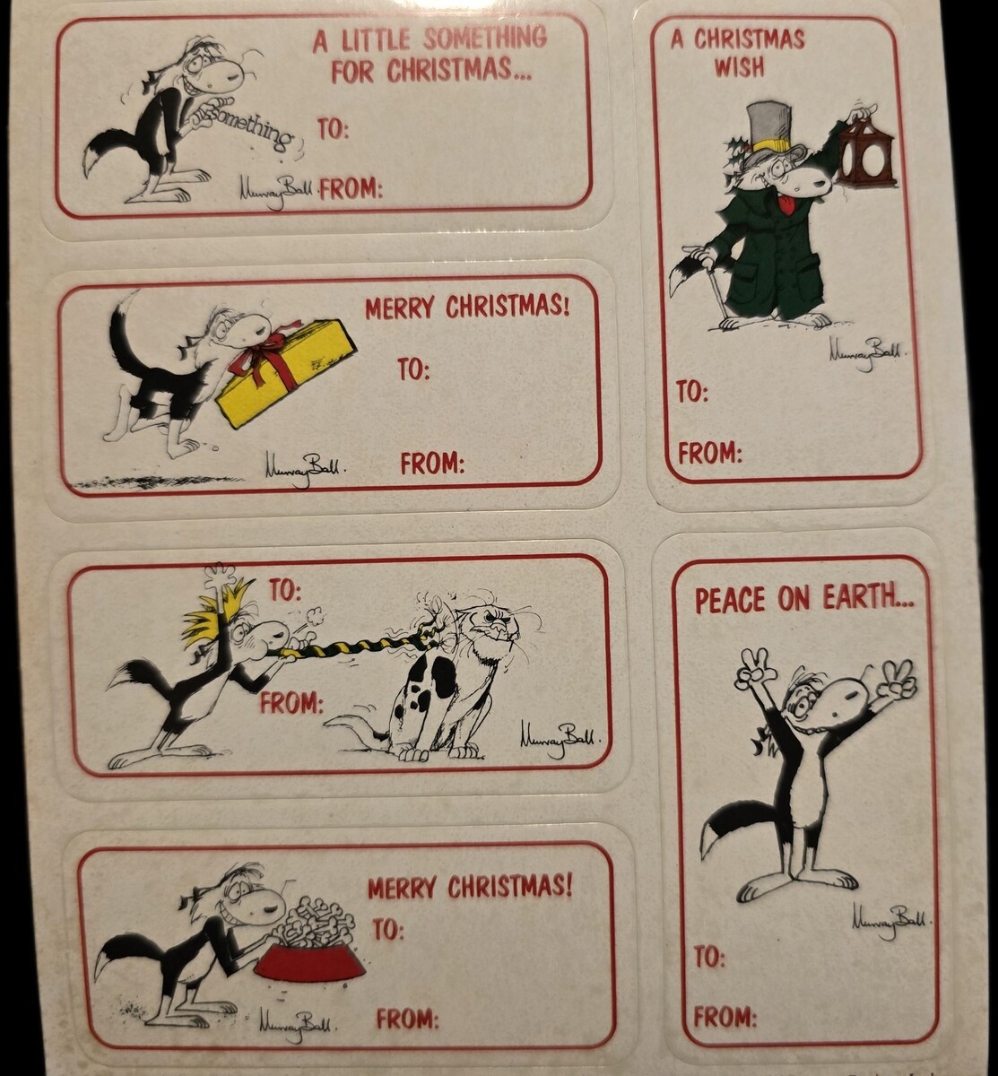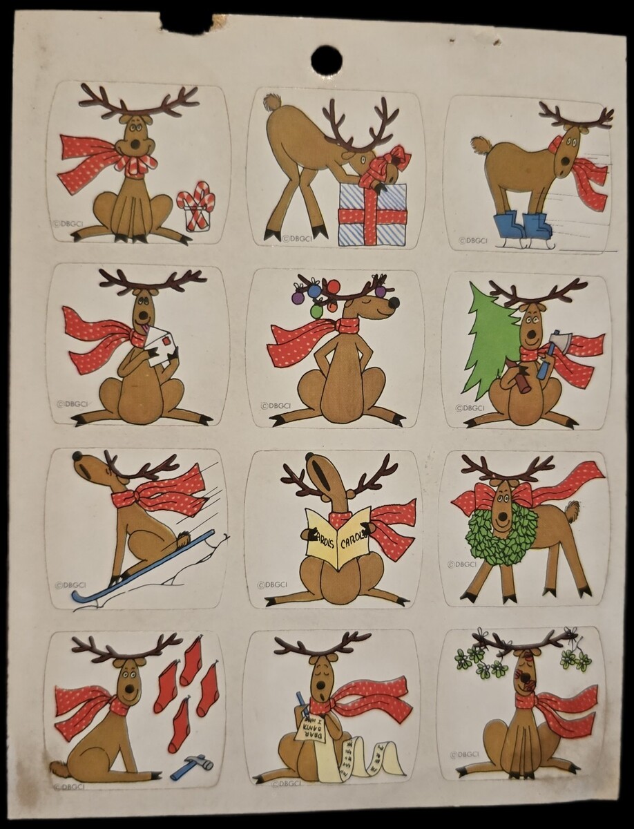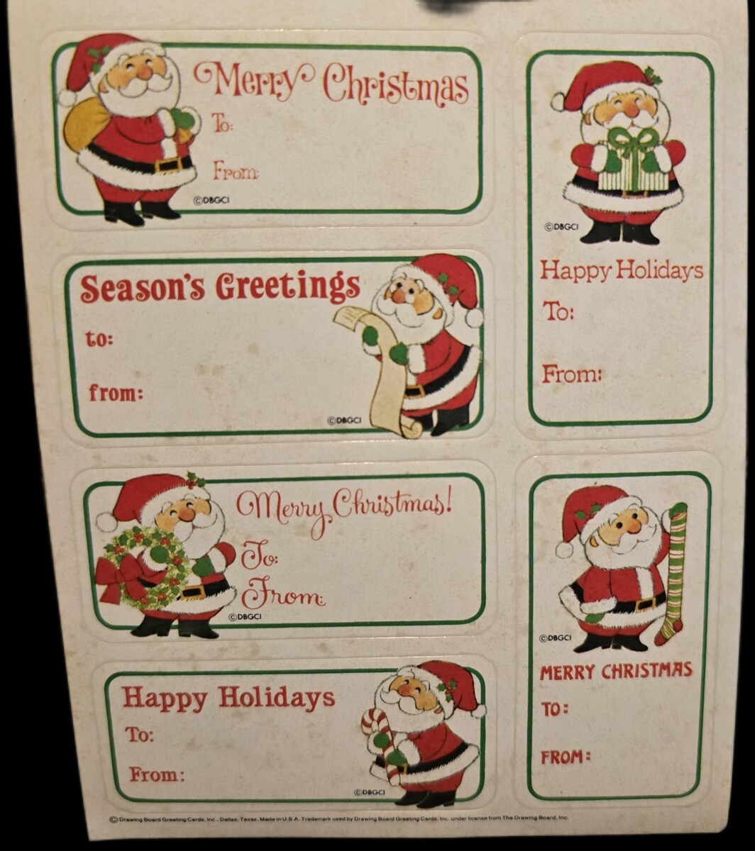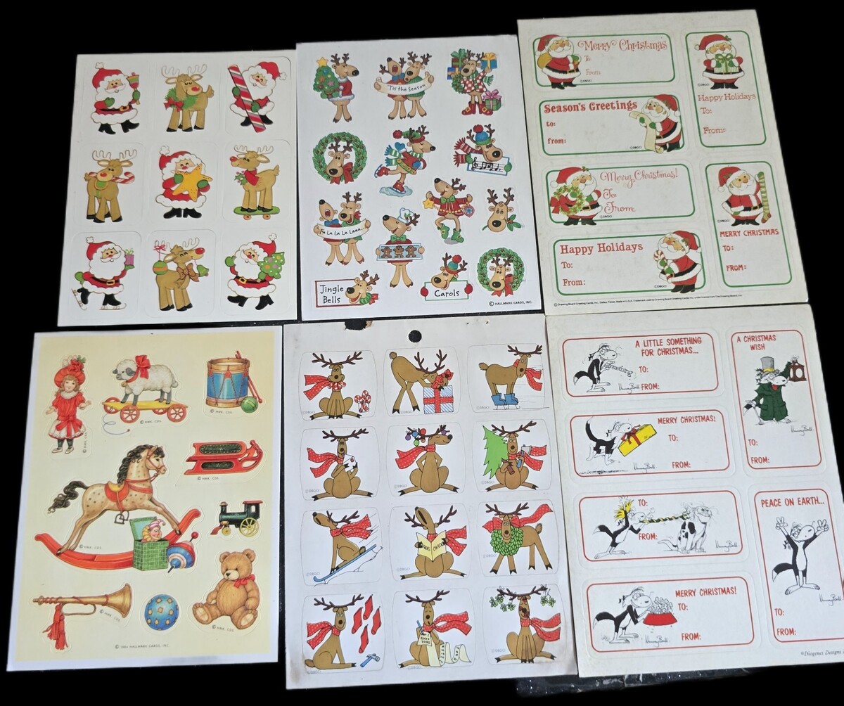 Vintage Sticker Lot Christmas Tags 6 Sheets AGC,Gibson Hallmark, Footrot Flat