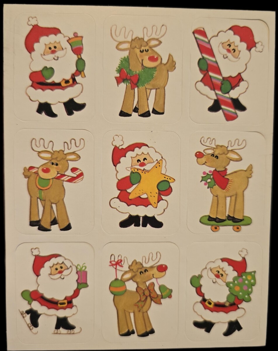 This product is a lot of 6 sheets of vintage Christmas stickers featuring tags from brands like Hallmark, Gibson, and AGC. The stickers are colorful and themed around holidays, making them perfect for crafts and scrapbooking projects. The variety of designs and brands included in this lot adds a fun and festive touch to any holiday-themed craft or scrapbook page.
