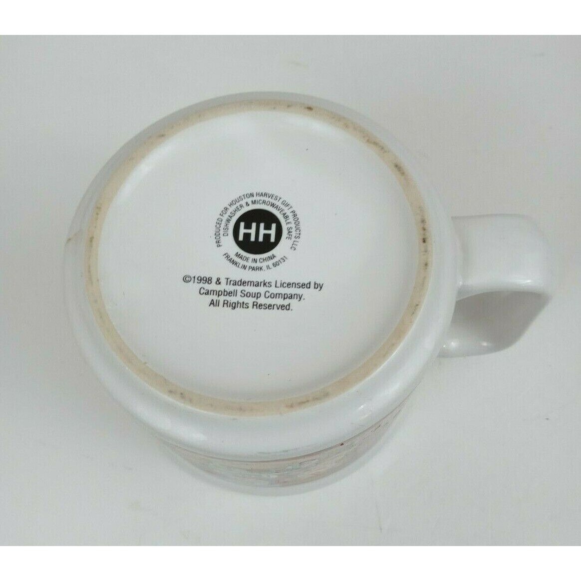 This is for a used Vintage 1998 Campbell's Soup Cup Mug Kids Design Soup Party Houston Harvest.