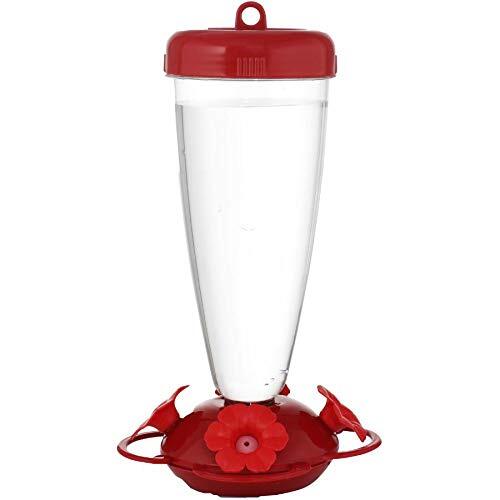 Product description: Attract iridescent beauties to your yard with the Perky-Pet top fill hummingbird feeder. Thanks to patented top fill technology, filling has never been easier. To fill, simply unscrew the cap and pour nectar into the top, no inverting necessary. Plus, the convenient wide-mouth opening reduces the risk of spillage while you pour. To attract more hummingbirds, the top fill feeder features four flower-shaped feeding ports with perches. The flower shape, red color and soft, flexible feel of the ports combine to create a more natural feeding experience that hummingbirds won't be able to resist. With a built-in ant moat, ants will never be a problem for this feeder. In addition, the plastic reservoir holds up to 24 oz of nectar to keep your hummers satisfied.