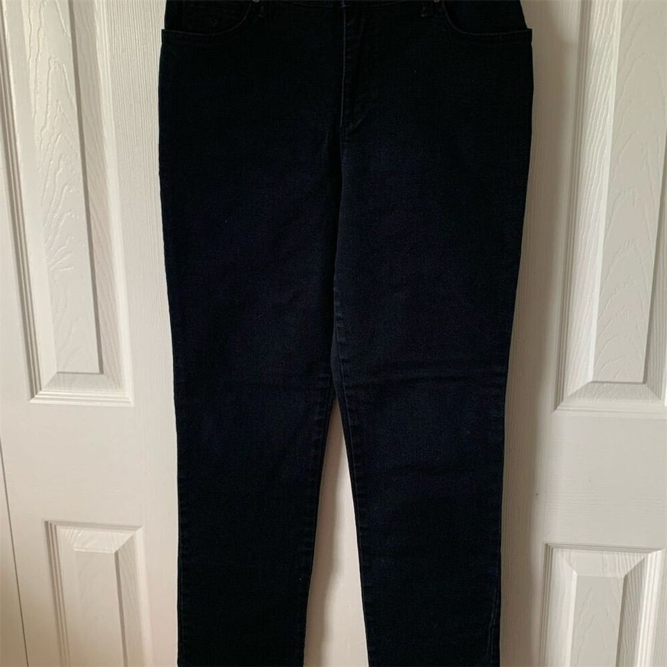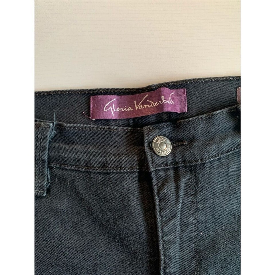 Keywords: Gloria Vanderbilt, women's jeans, size 8, petites, straight style, black jeans, dark wash, denim, mid-rise, 5-pocket, machine washable, pre-owned.