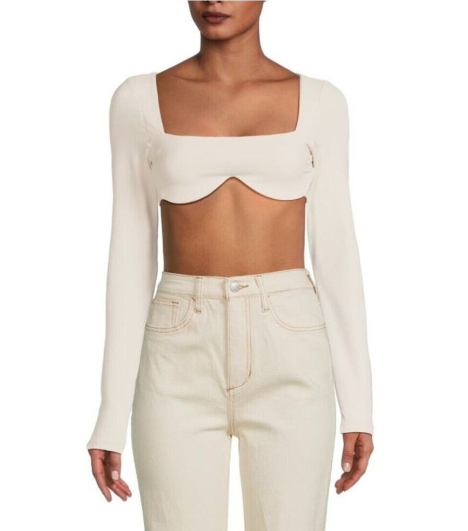 Susana Monaco Sweetheart Crop Top Wire Top Long Sleeve In Almond $138, Sz S, NWT