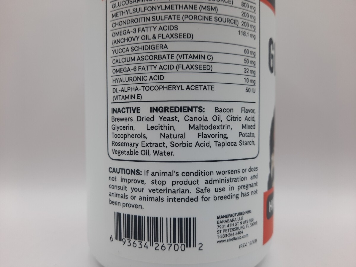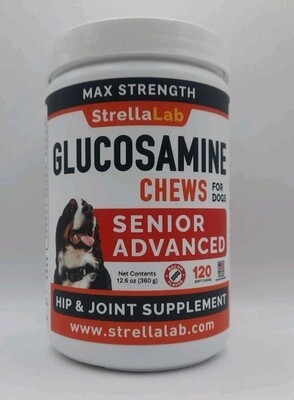 StrellaLeb Max Strength Glucosamine Chews Dogs Senior Advanced 120 SC Exp 09/27