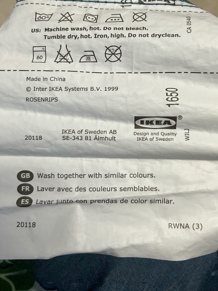 IKEA ROSENRIPS Twin Duvet Cover Blue Floral Folk Art Vintage 1999