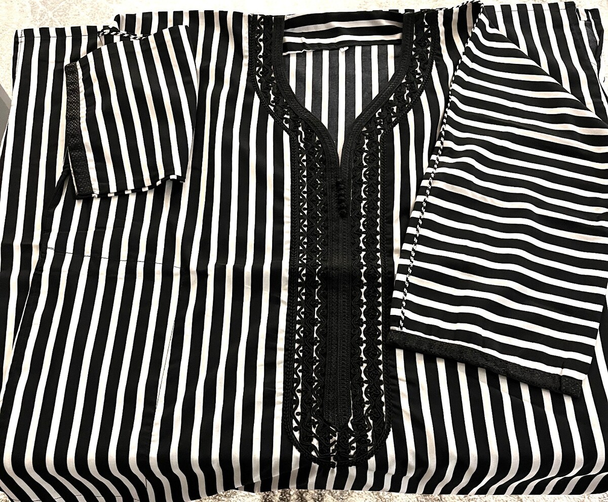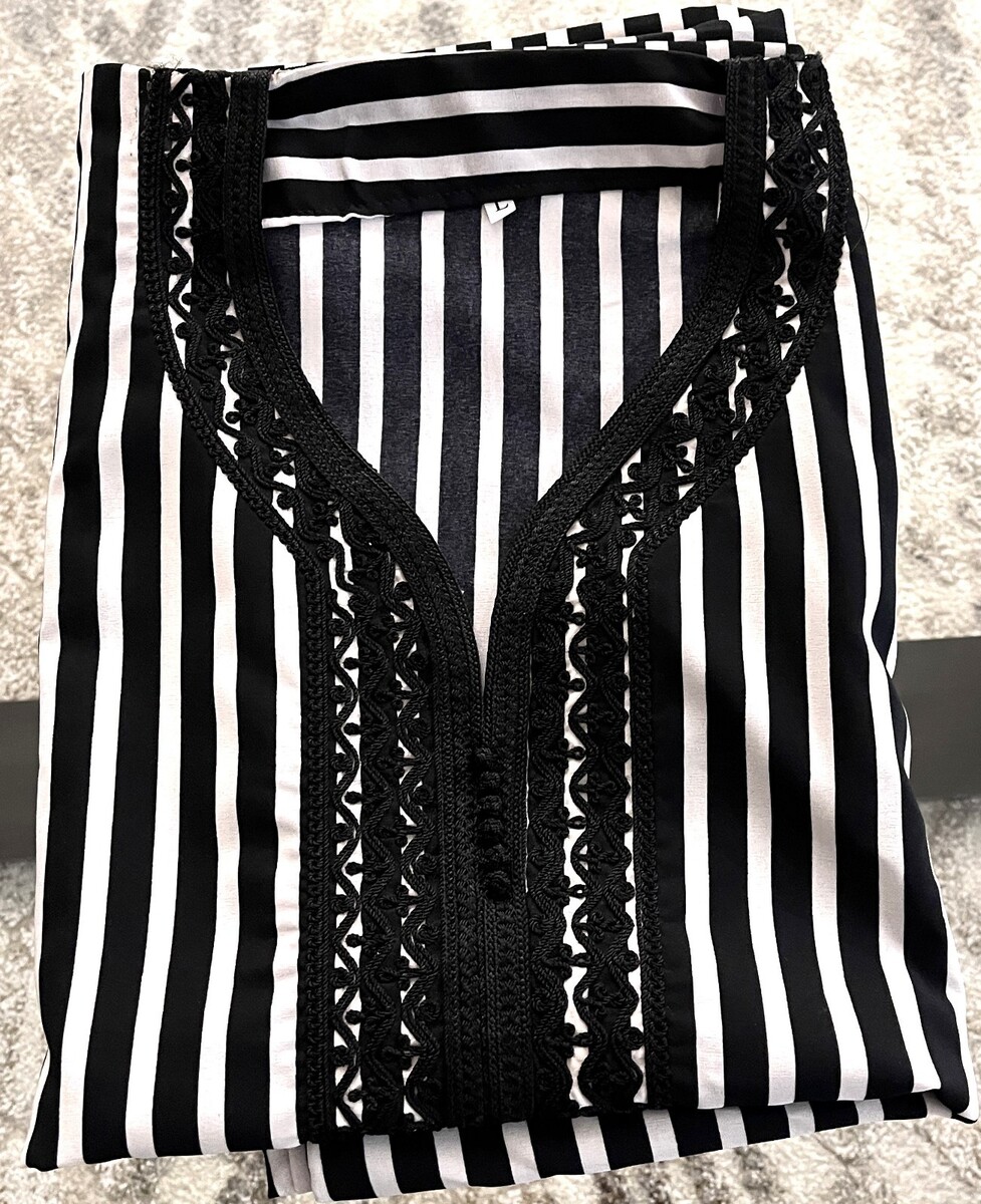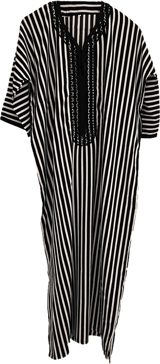 Striped Moroccan Kaftan: Black and white Mens Loungewear