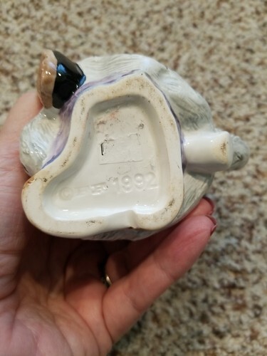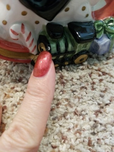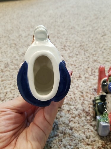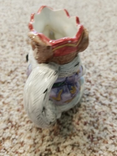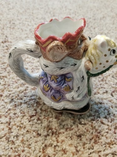 Set is in very good condition, no cracks or crazing. Rat pitcher has a tiny chip on back of crown, see last pic. Nutcracker has a tiny chip on train, easy to touch up. See pics for measurements and condition.