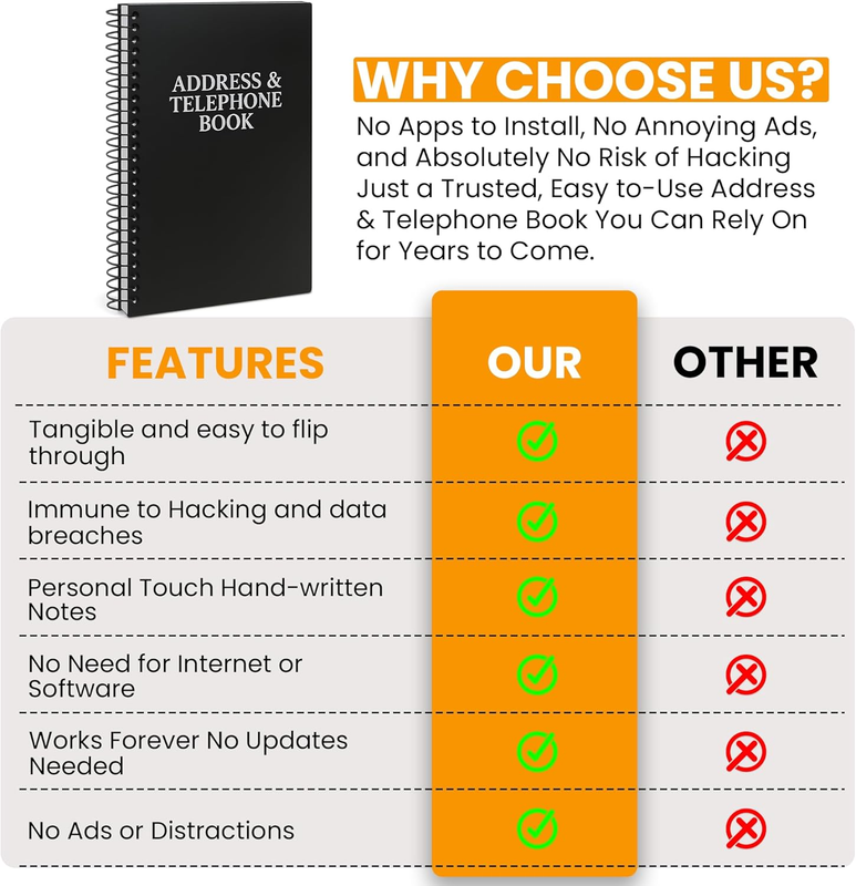 Portable Professional: Compact 8x5-inch size fits desks, bags, or drawers, perfect for business professionals, students, or home organizers seeking a sleek, reliable way to manage contacts and key details.