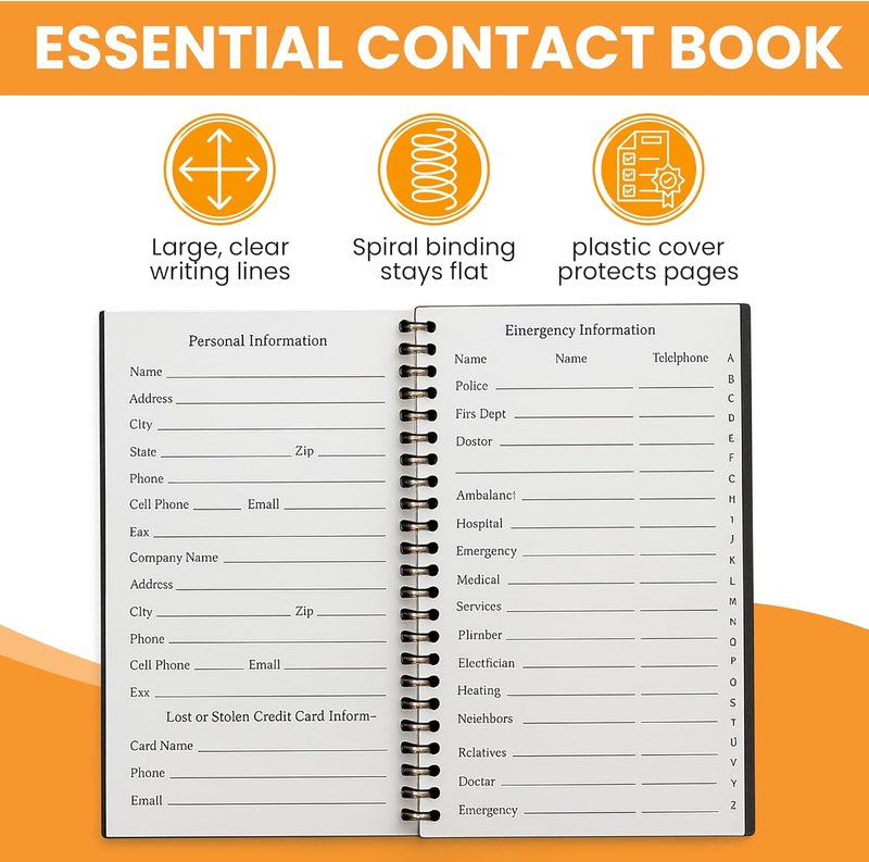 Versatile Extra Pages: Includes 3 pages for important dates, 2 for notes, and 1 each for emergency and personal info, offering a complete solution for keeping critical information organized in one compact book.