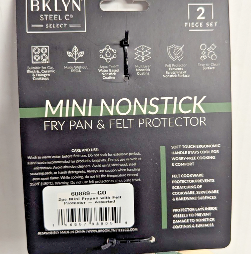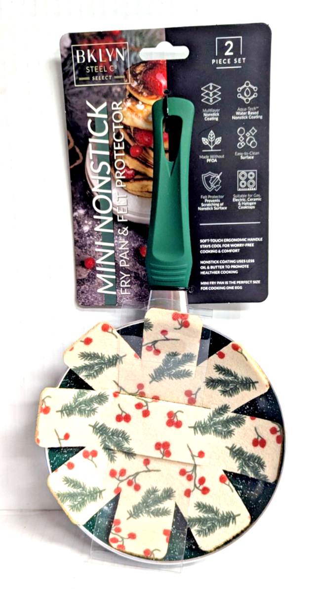 BKLYN Steel Green Mini Non-Stick Fry Pan and Felt Protector Christmas Gift NEW