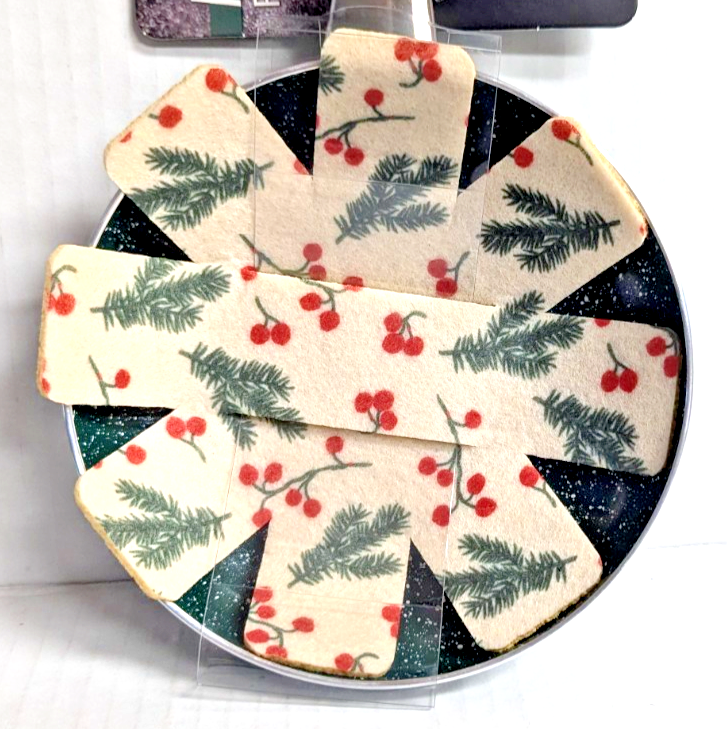 The set also includes a felt protector with Christmas tree branches and holly berries to prevent damage when storing.