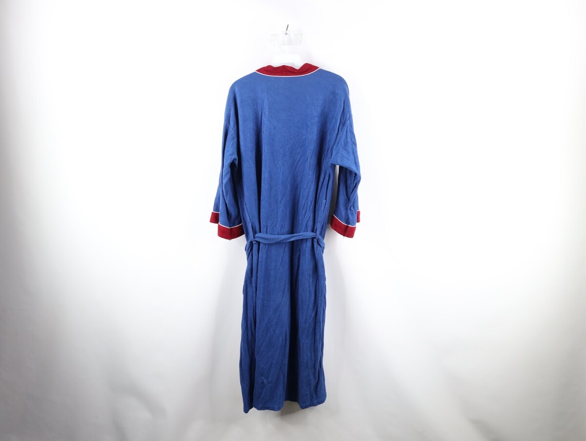 Vtg 70s Streetwear Mens Size S / M Velour Belted Bath Robe Loungewear Blue USA