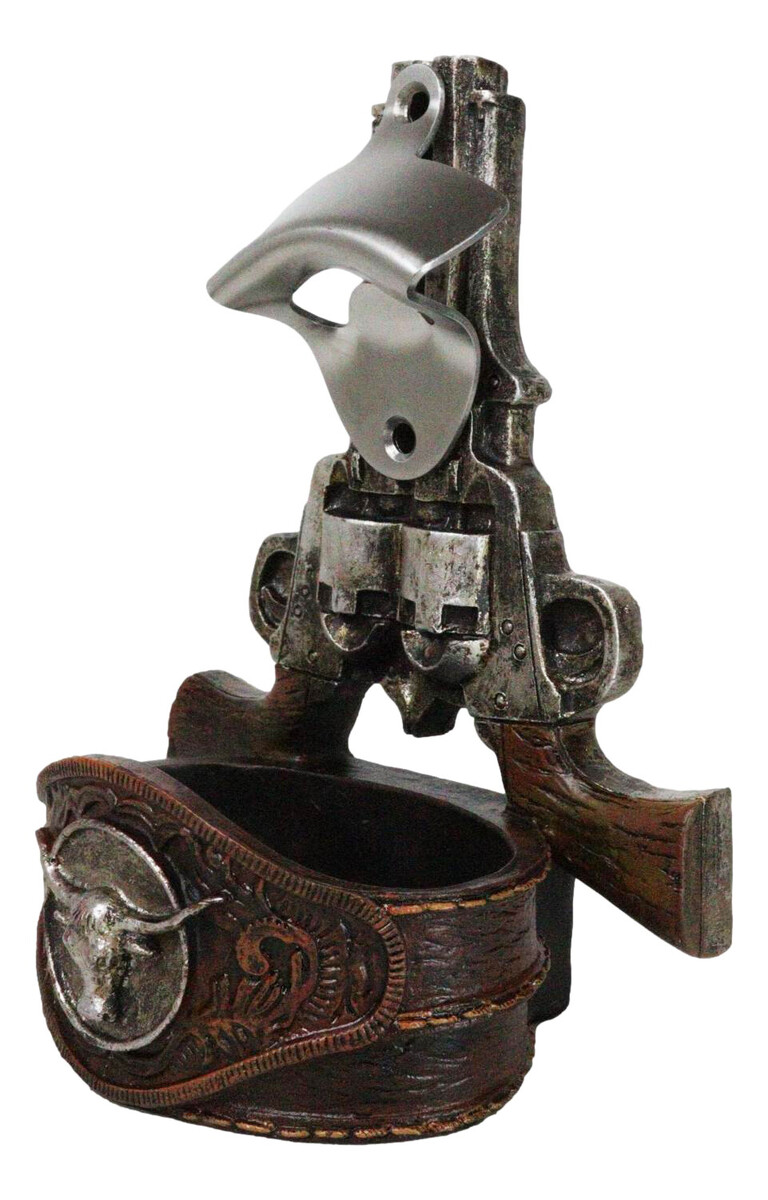 Western Cowboy 2 Gun Pistols Silver Texas Longhorn Concho Wall Bottle Cap Opener