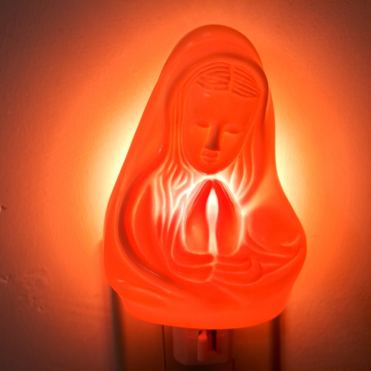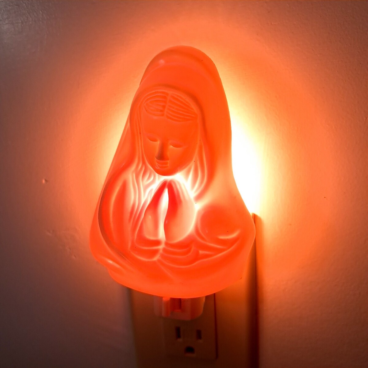 Magician Virgin Mother Mary night light plug in cream plastic praying vintage