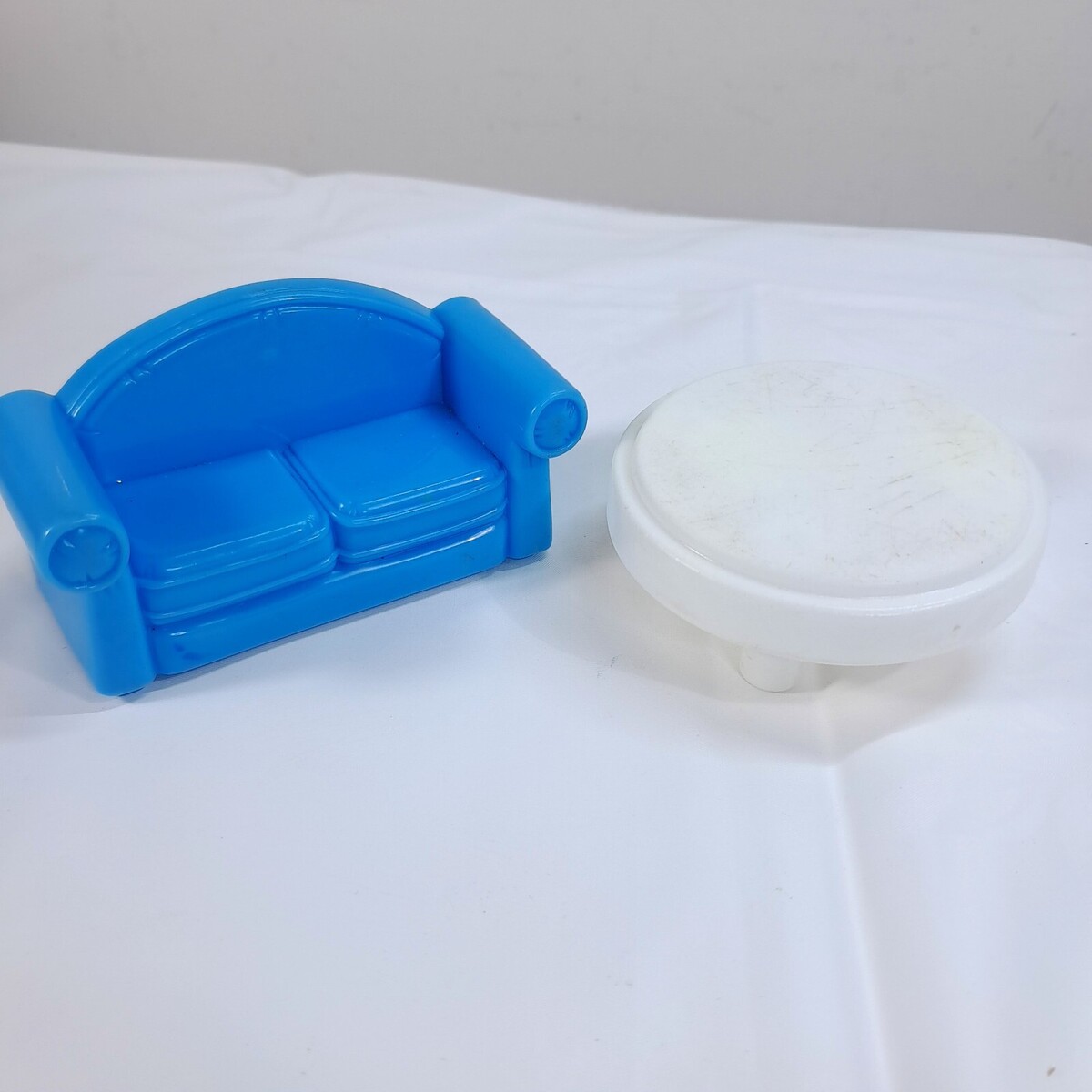 Mattel Fisher Price Sweet Streets Dollhouse Blue Couch Sofa & white table round