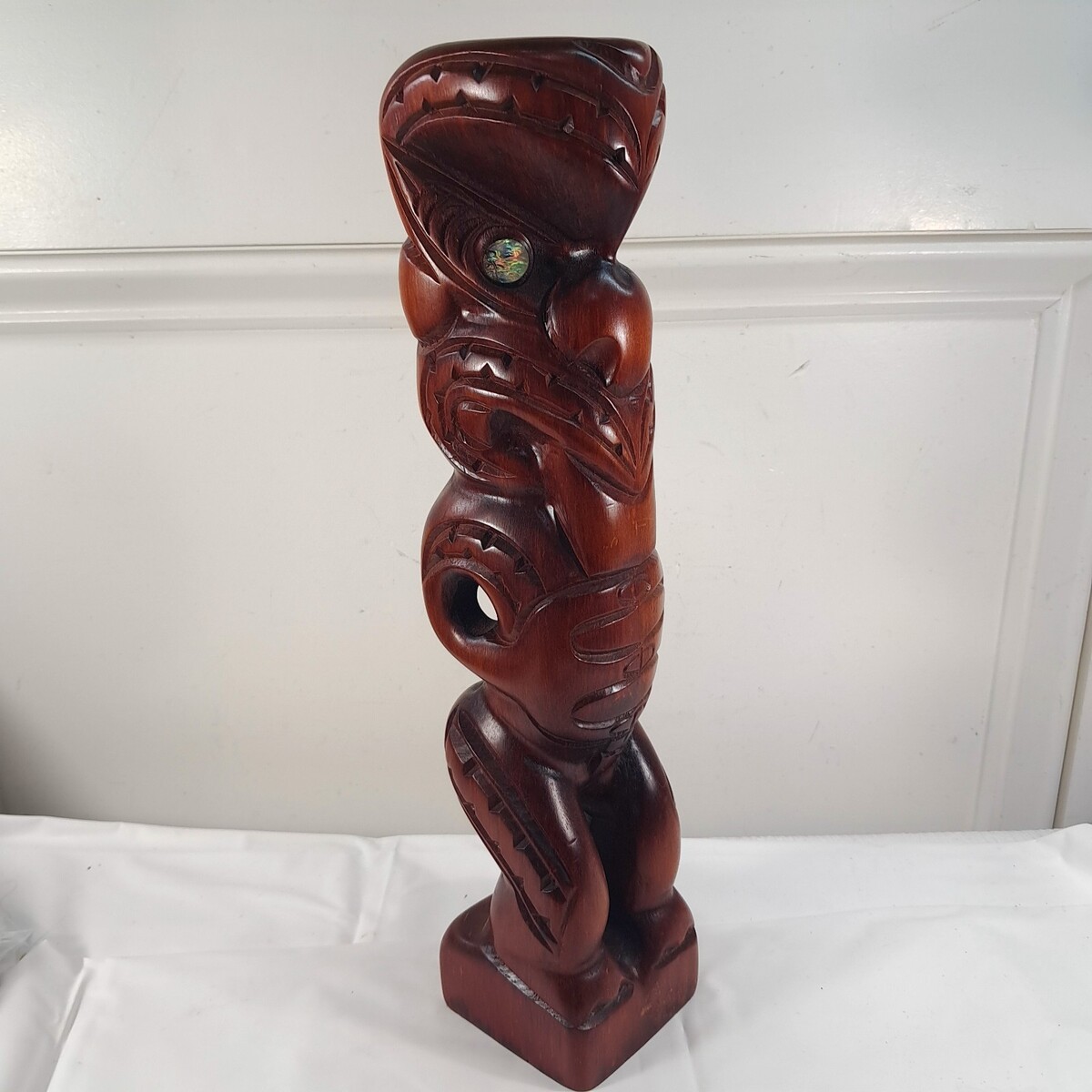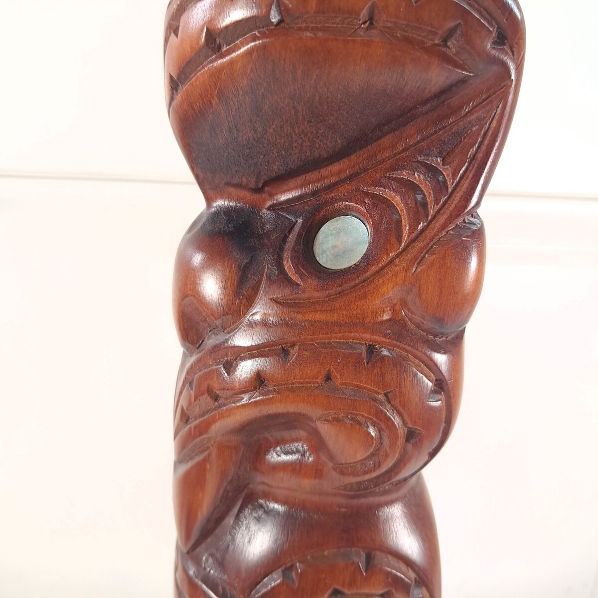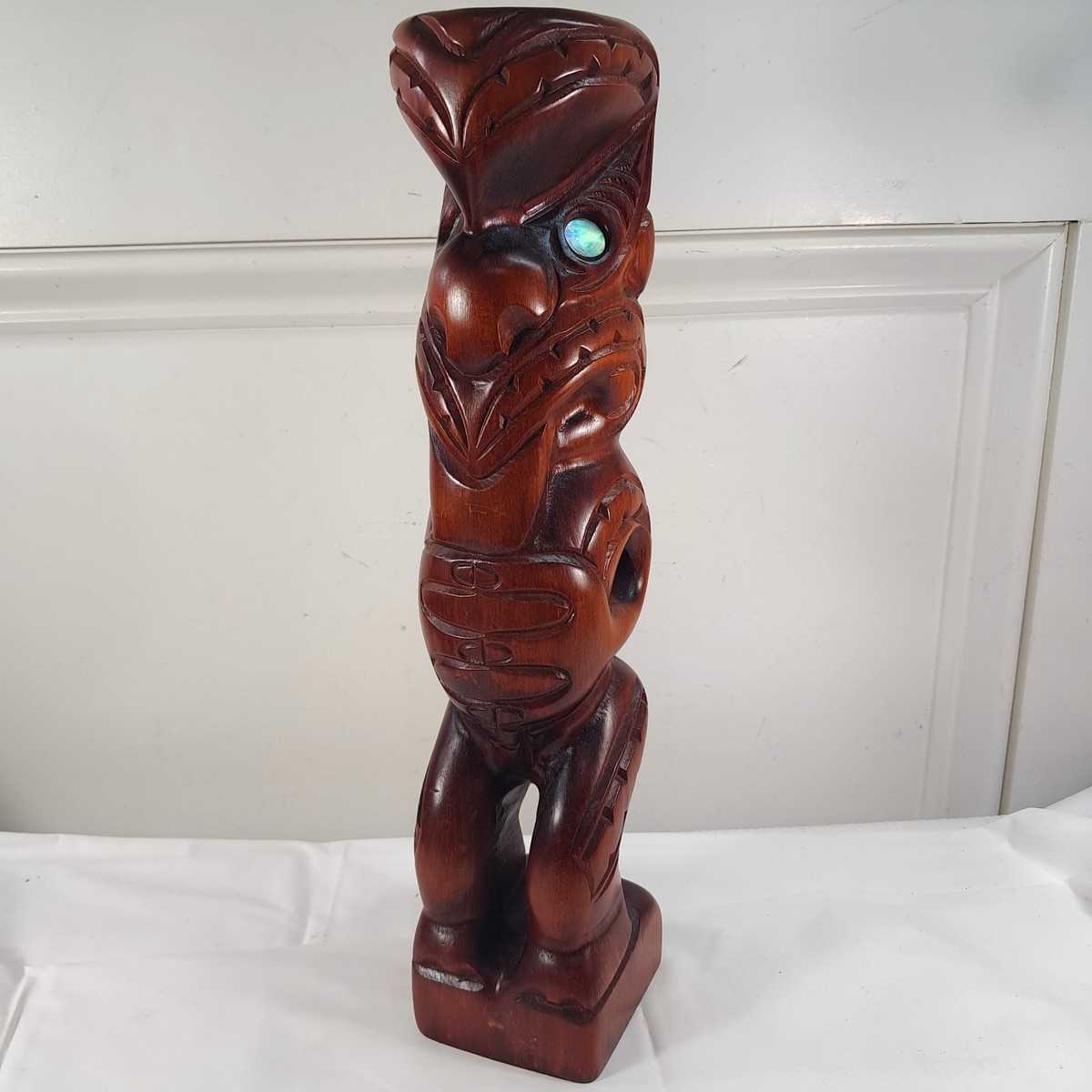 New Zealand Maori Hand Carved Kauri Wood Teko Teko Tiki Totem Statue MOP eyes