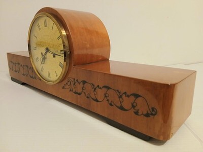 This is a Vintage Mid Century Russian Mantel Clock that comes with the key. This was made by Jantar. It keeps real good time but the chimes do not work. It use to chime very good but since it was taken out of storage it does not chime anymore. It will need some kind of adustment. There are some minor discoloration on the wood as shown in the last 3 photos. Other than this it is in great shape. The clock measures 27, 1/2 inches long x 6 inches wide x 10, 1/2 inches tall. This will be packed in a very large box with bubble wrap....Let me know owned if you have any questions. Thankyou for looking.
