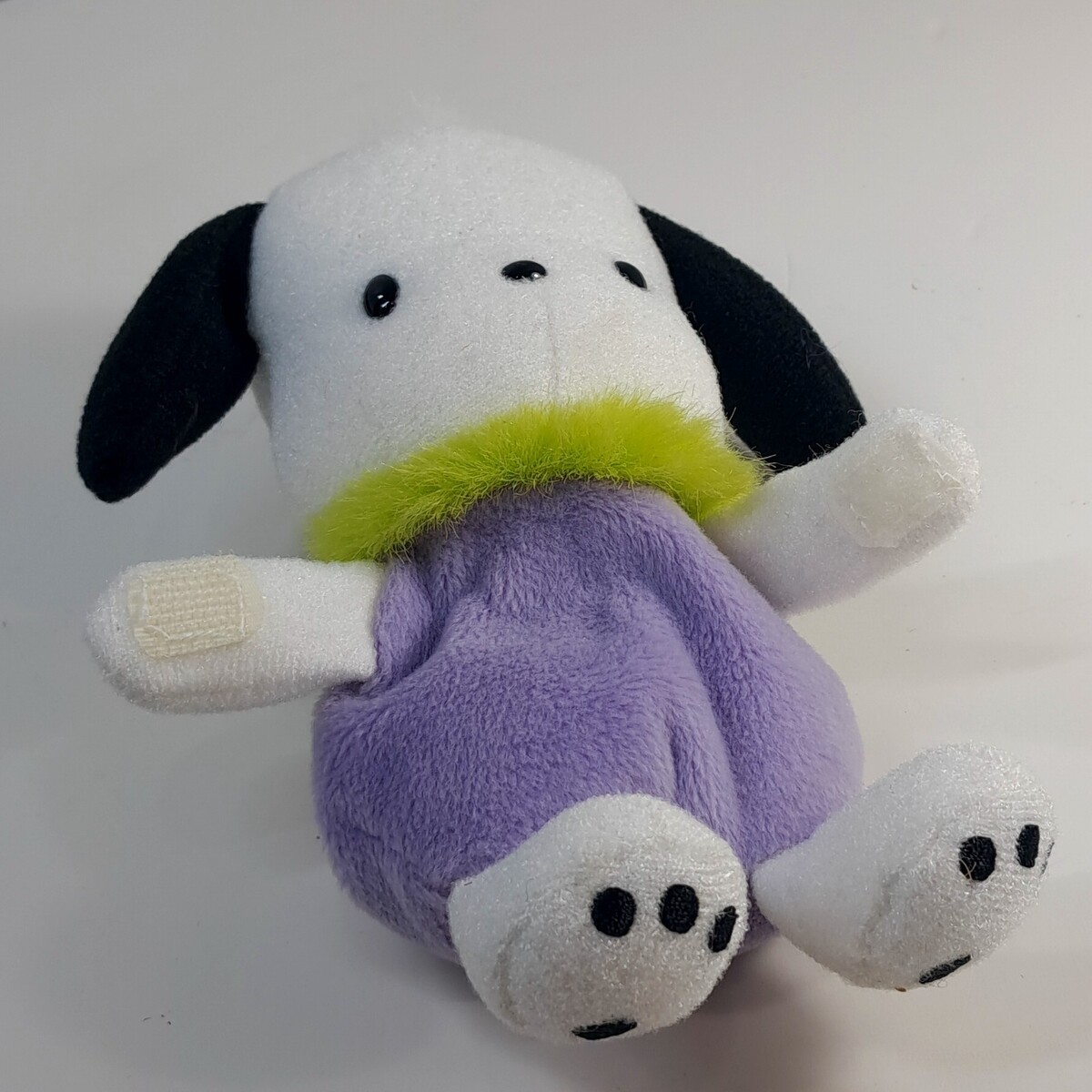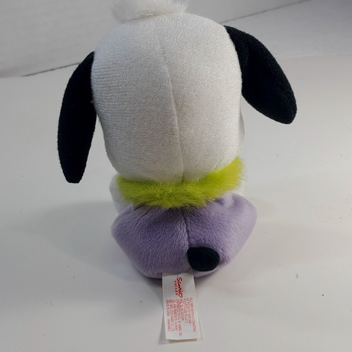 Sanrio Smiles Pochacco Mini Plush hugging hands attaching purple green boa 2000