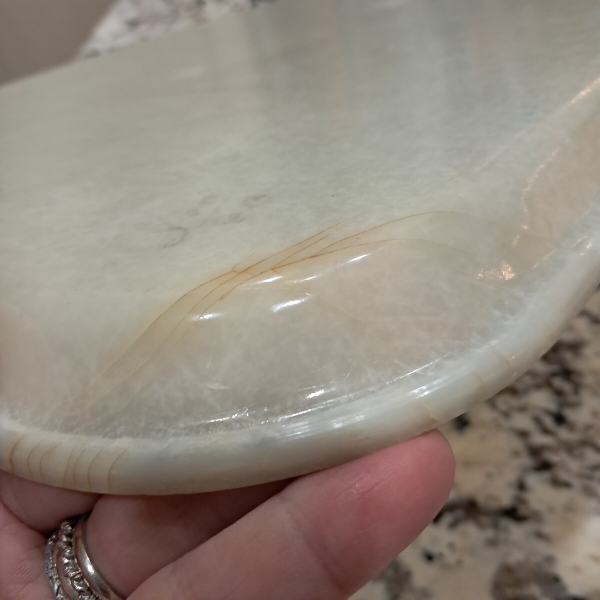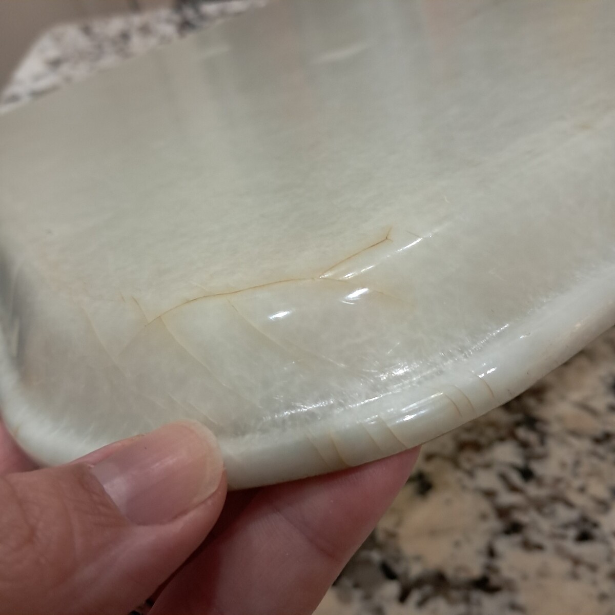 Plastic serving tray. Some crazing/marks/stains/scratches as shown.