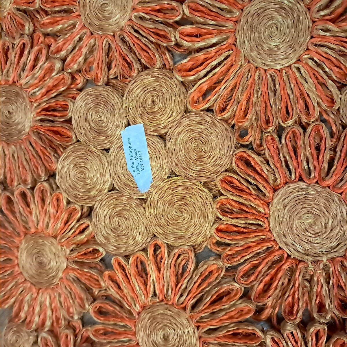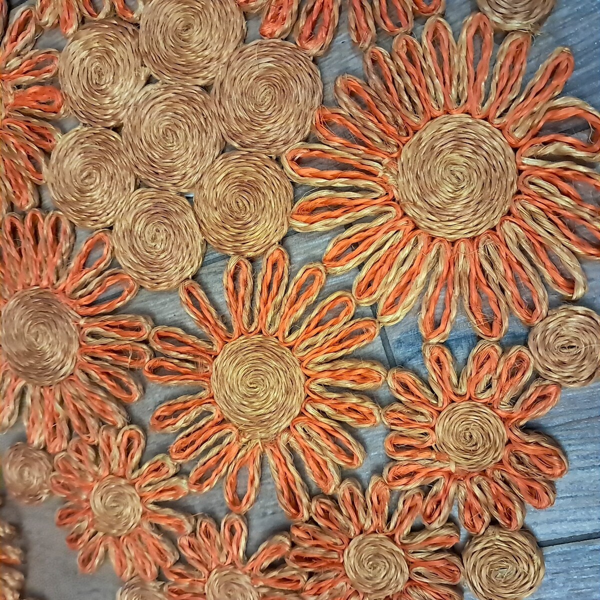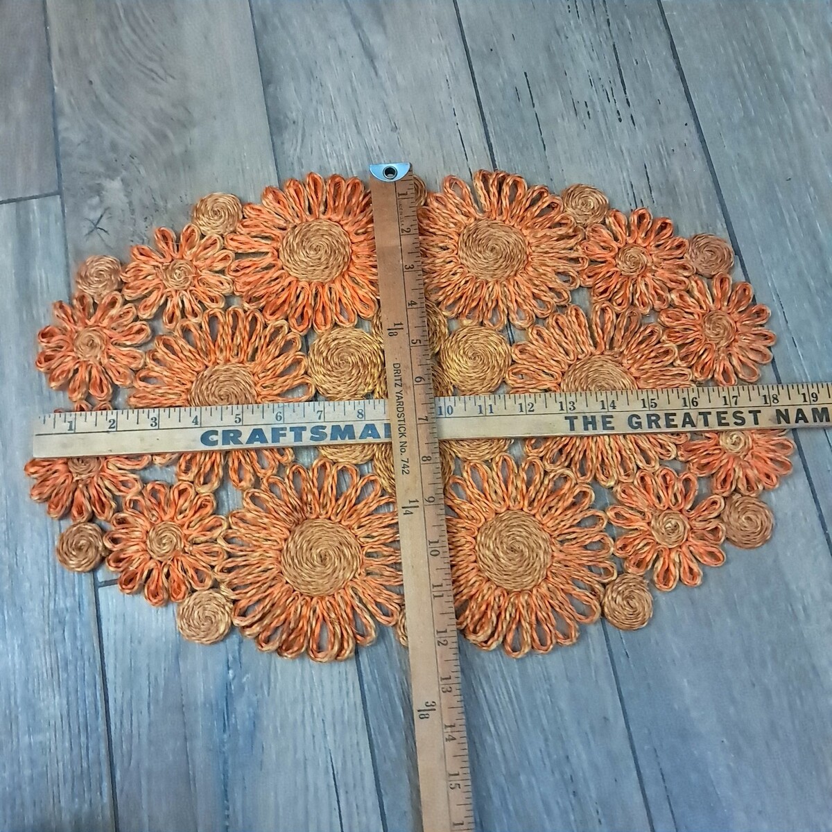 Vintage Placemats raffia Straw jute Boho brown orange daisy sunflower set 2