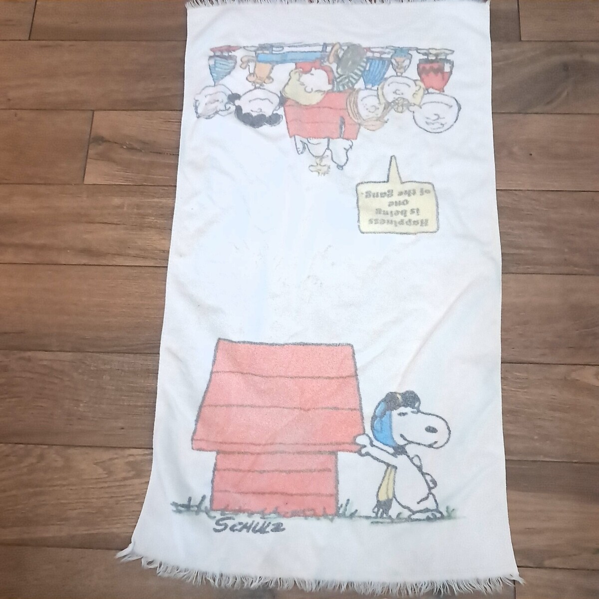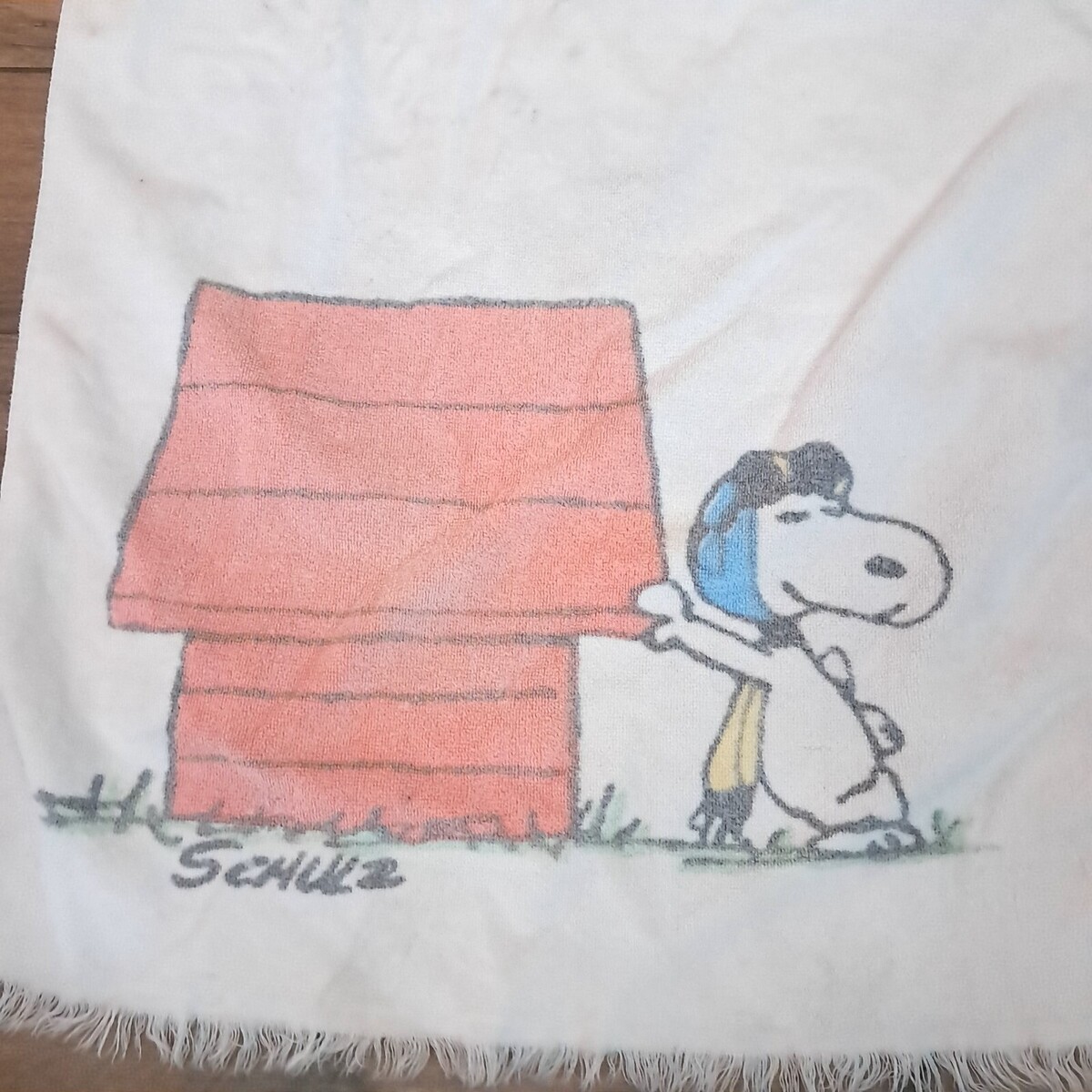 Vintage Snoopy Woodstock Peanuts beach bath Towel Tastemakers Red Baron 1971