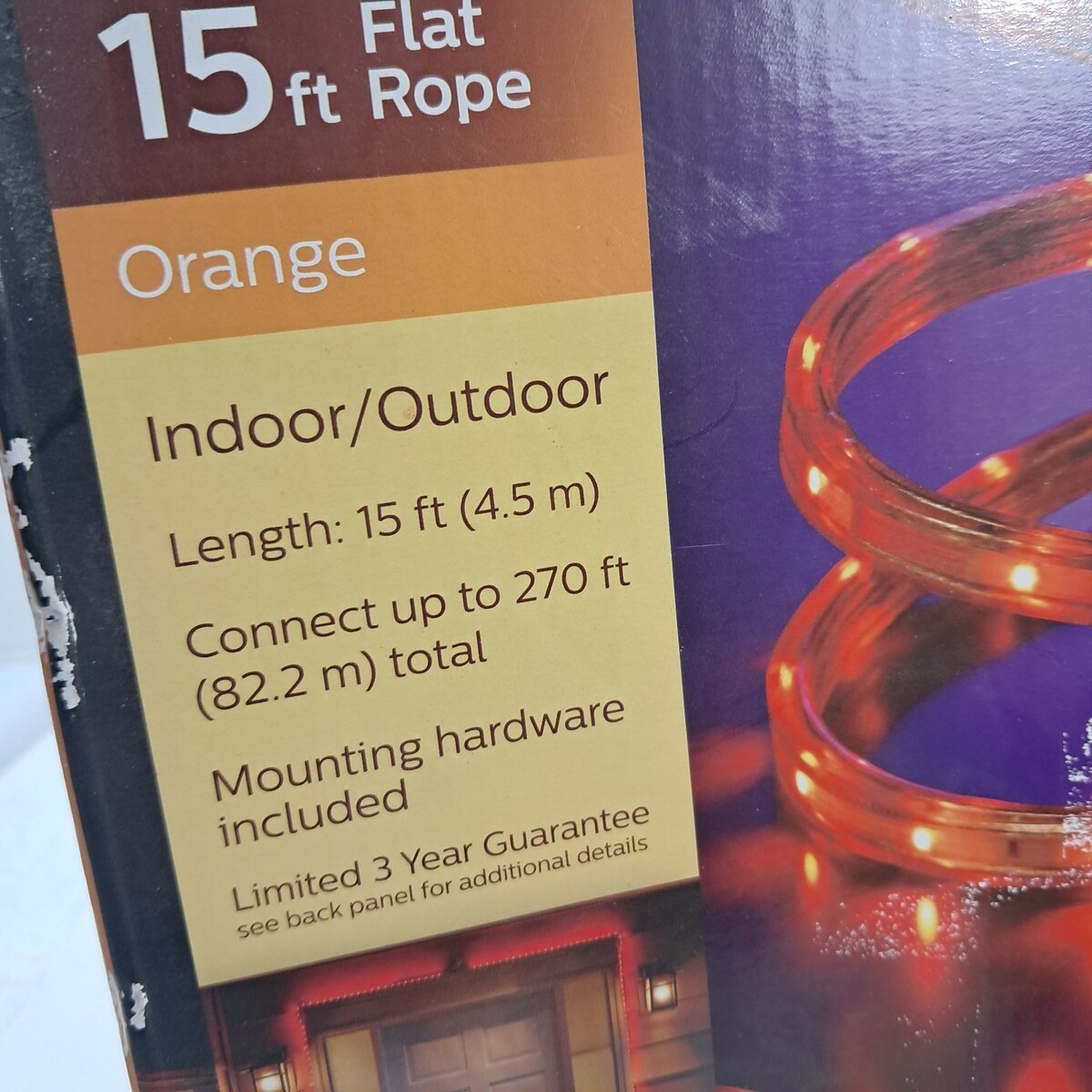 NEW Philips Orange Flat Rope Lights 15 ft LED Indoor Outdoor Halloween fall