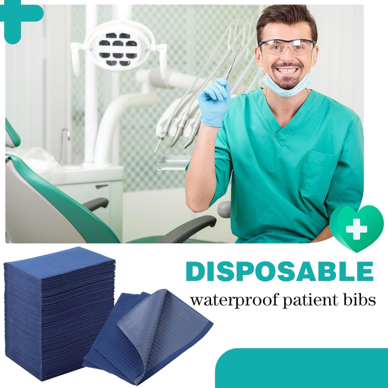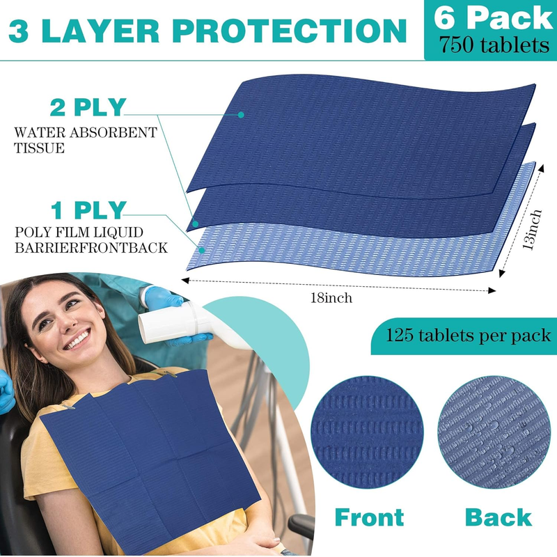 Dental Bib Bulk: you will receive 750 pieces of dental bibs; 3-ply waterproof tattoo bibs Sheet is made with 2 layer paper and 1 layer of polyethylene, this design allows the bibs to provide maximum protection; Sufficient quantity for daily use can be applied for a long time