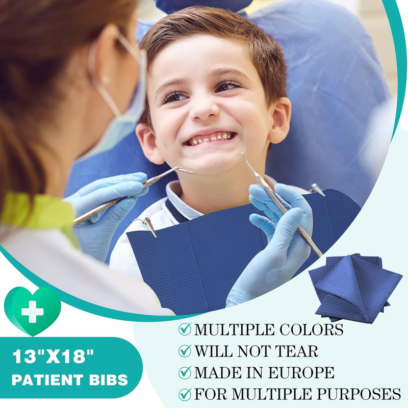 Provide Protection: these colorful disposable bibs are large enough to use on a variety of patients; Each bib measures 13 x18 inches in size to provide coverage and protection; Keep your work area and clothes clean and save cleaning time; They effectively cover the patient?s chest and neck area without being uncomfortable or leaving large areas exposed